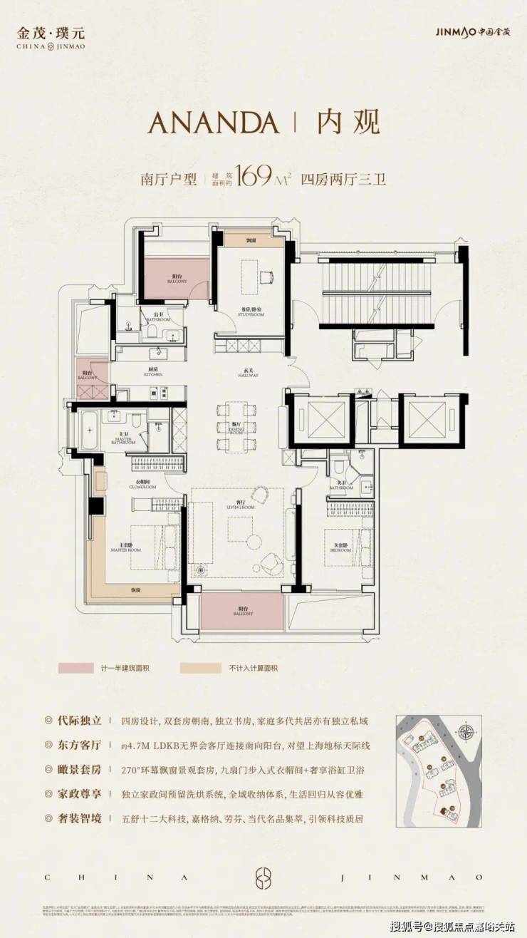 当所有的理念凝结于一个具体的家,金茂·璞元的样板间便成为格调叙事的生动篇章。以建面约172㎡「ANANDA」户型为例,那个270°的环幕飘窗,其意义远不止于采光。晨曦、午后、黄昏、夜景,每一刻都是独特的风景。