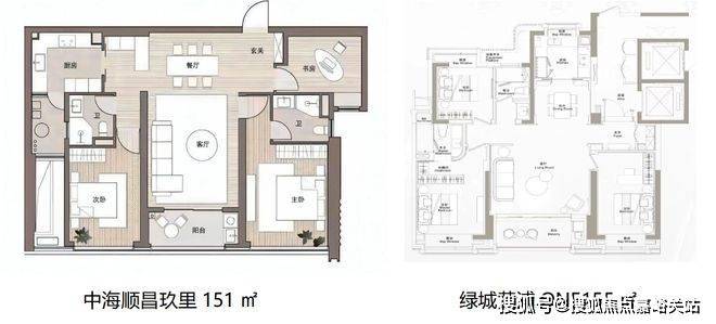 中海顺昌玖里低区三梯三户,151平做的2+1、全南户型,卫生间窗对着设备间,厨房采光对着天井,整体在楼栋里是凹进去,很不舒服。
