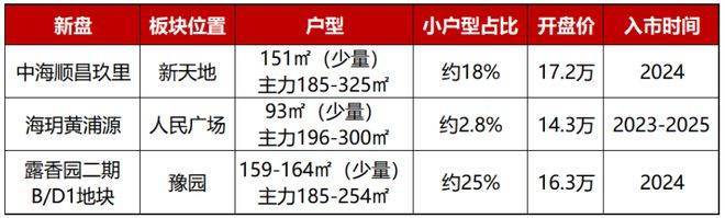 就算有小户型,占比也非常少,中海顺昌玖里150平只占18.3%,海玥黄浦源93平更少只有2.8%,小户型非常稀缺。