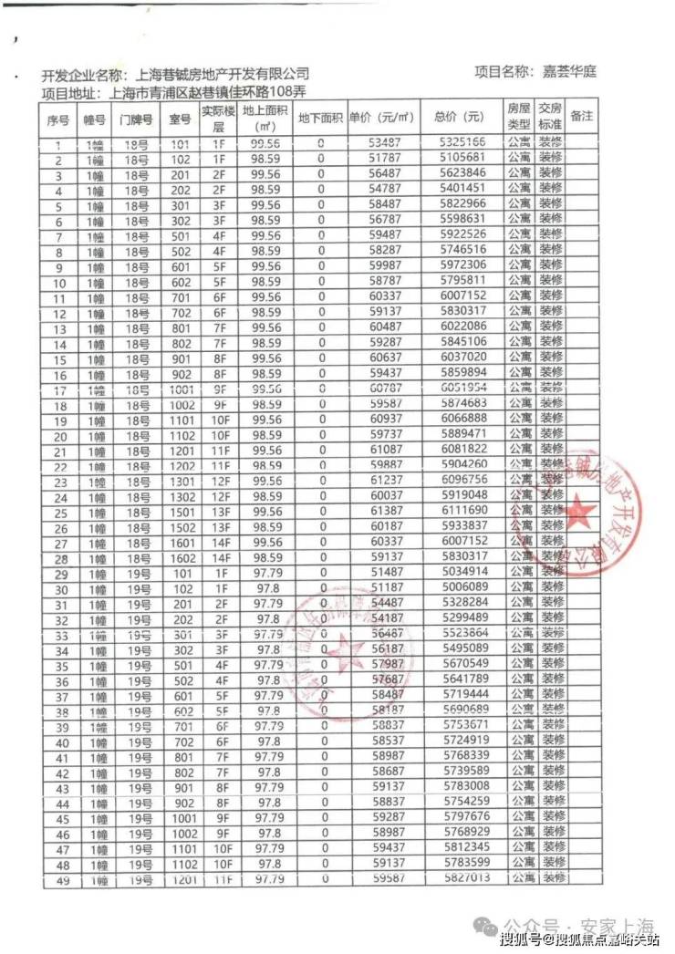 上期一房一价表
