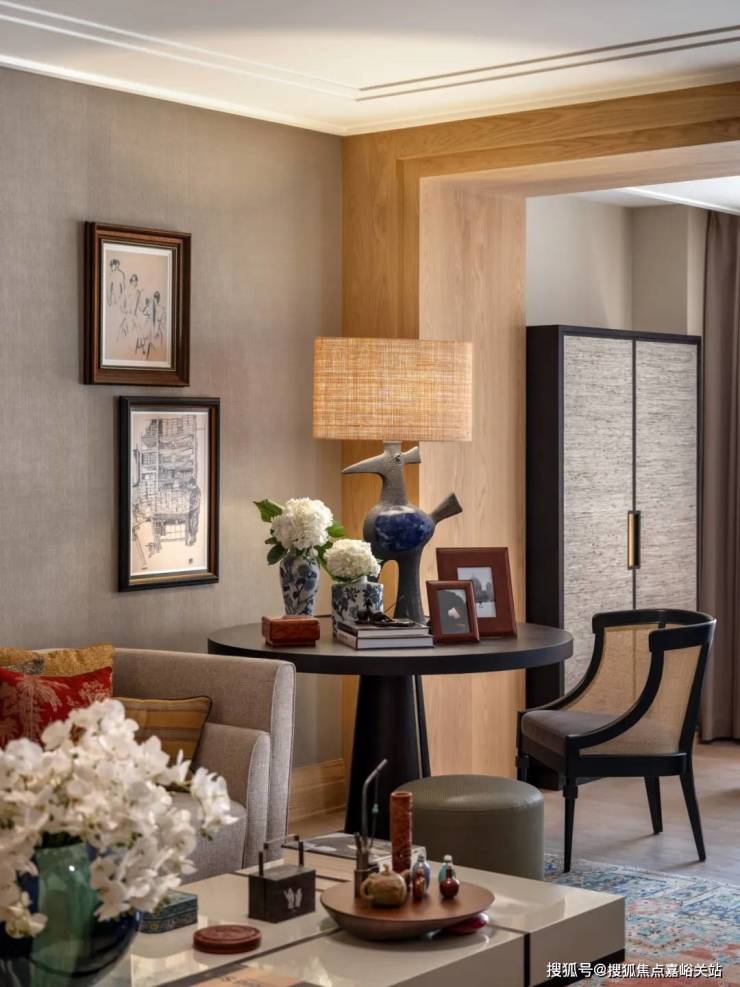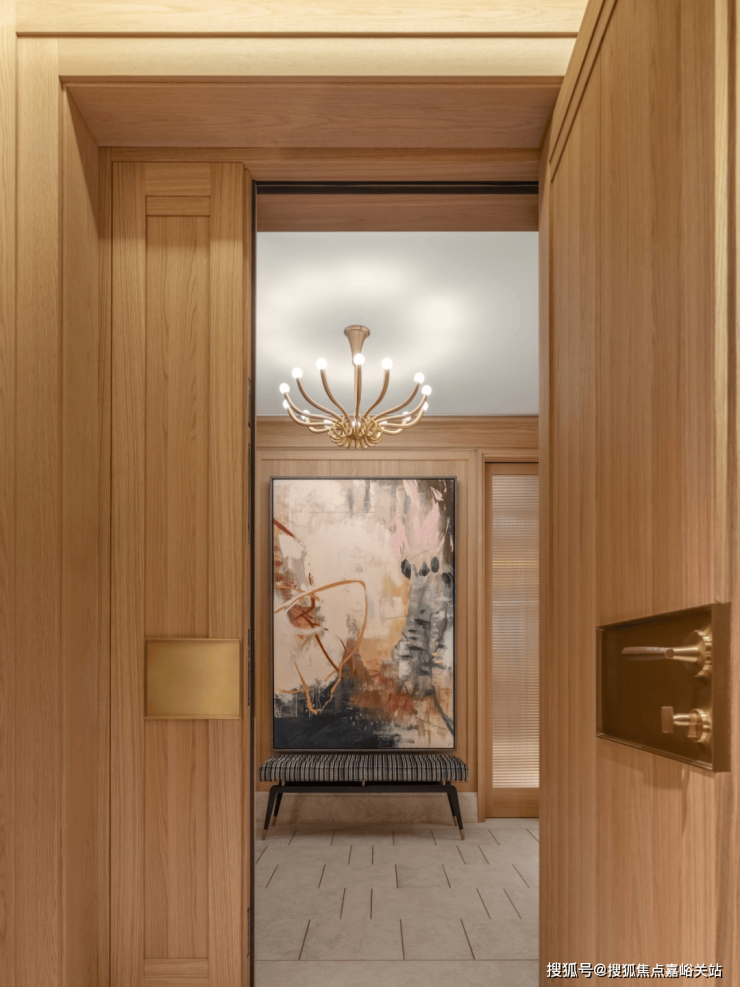 玄关是空间过渡的前站,是外部世界与私人领域之间的节奏转换地。通过材质、肌理、色调的搭配组合,构建具有电影质感的归家场景。作为空间的重要组成部分,艺术品恰如其分地妆点其中,让主人的风雅志趣一眼可见。
