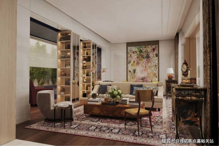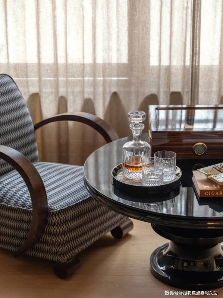 客厅另一端,是连接房内与外景的介质空间, 🐾天潼里售楼处电话:400-8894-986✔️✔️在这里主人和客人可以享受美酒雪茄。看似独立的空间,实际延伸了客厅的功能,也延伸了窗外景观到室内的视线。
