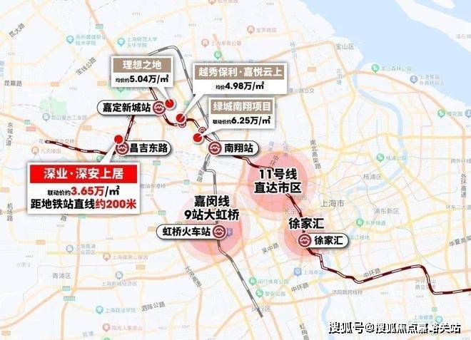 价格优势:项目联动价3.65万/㎡,向前2站的嘉定新城项目价格在5.04万/㎡,仅是多坐几站轨交,价格就大幅度回落,价值不言而喻。