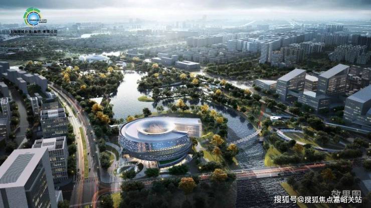 荣耀之环(在建中):临港新片区跨境金融总部集聚、金融业务创新区的总部湾核心地标,直径达150米的巨构圆环,漂浮在临湖的4栋百米塔楼之上,其圆形结构象征着金融的繁荣和统一。