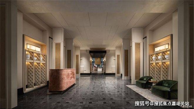 电梯前厅独享,门头采用石库门元素,条石做框,叠级细节层次丰富。电梯按键处的弧度,灵感来自旗袍领口。宠物按钮的人性化设计,更是把日常痛点考虑到了极致。