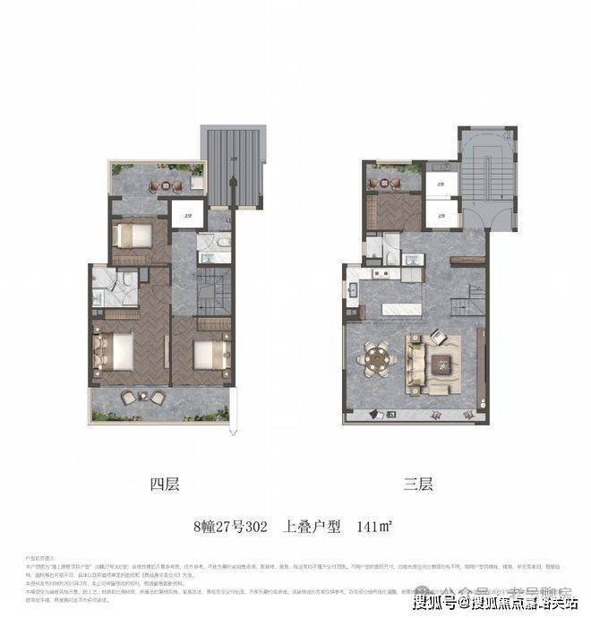 项目叠墅包含建面约141㎡上叠和建面约150㎡下叠