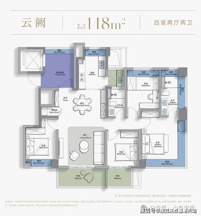 尺度感上:这是新政后松江板块首个四开间朝南、且不封阳台的三阳台户型。