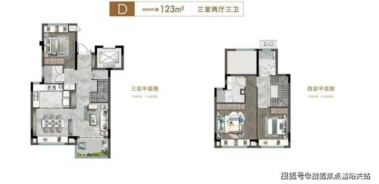 85平3房2卫,动静分离三开间朝南,厨房U型动线,主卧自带独立卫生间和飘窗,这个户型兼具低总价和功能性。