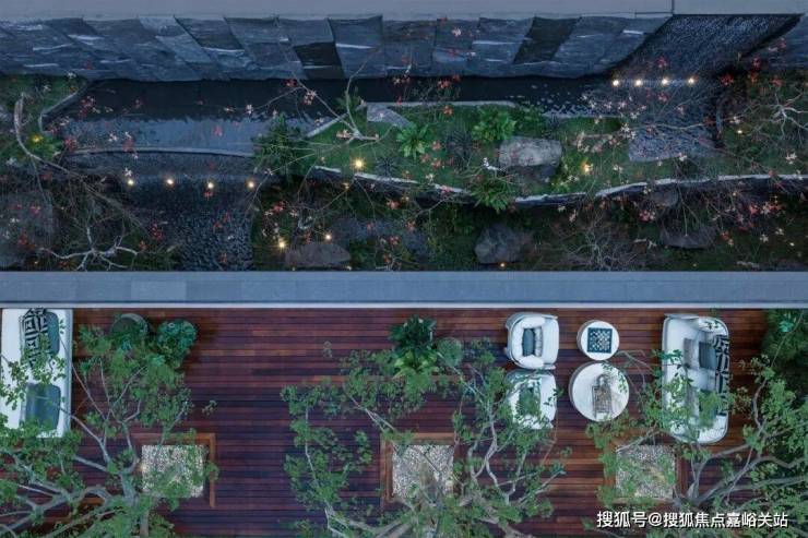 观瀑沉息 作为上海内环内惟此可赏三级叠瀑的舒展之地,木栈道延伸至瀑畔,贝金米黄奢石桌面尽显从容,紫薇与朴树环伺左右,在此运动、休憩,皆能与自然同频,感受身心的放松;