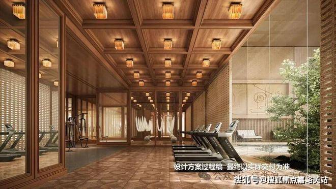 瑜伽健身区,大幅落地窗引入自然光线,中粮北外滩壹号售楼处官方电话为:400-118-5086(24小时服务)天花的格栅造型,地面的复古拼花木地板,都透出浓厚的海派风情。中粮北外滩壹号售楼处官方电话为:400-118-5086(24小时服务)