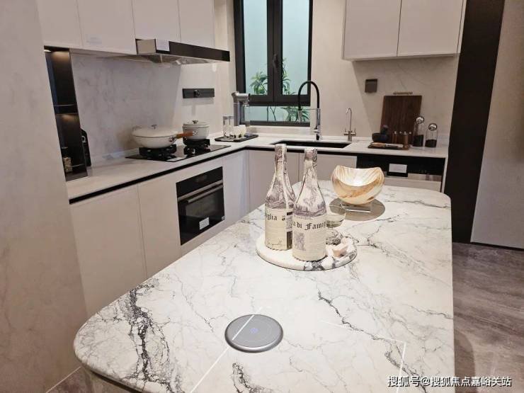 柜门白色烤漆面板,抽屉分区也都是帮大家细致划分,如多功能调味拉篮+谷物抽+碗碟拉篮等。岛台上配置可升降插座,铝合金抽屉,石材背景板的金属开放格实用性很强。☑️☑️海上清和玺售楼处电话:400 - 8377 - 020☑️☑️