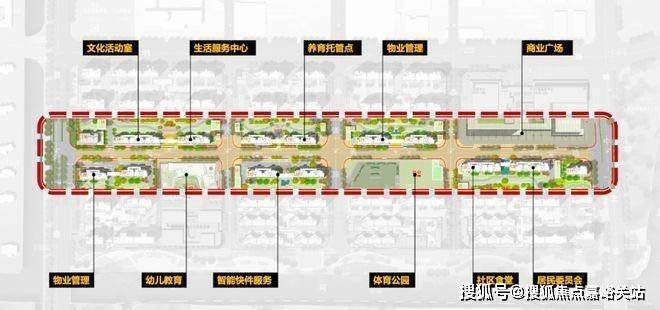 一轴:幼儿园、体育公园、快递驿站、文化活动空间等