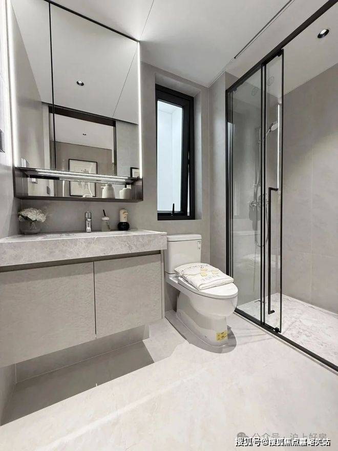 主卫智能一体马桶、顶喷花洒等配置齐全,玄关柜整体交付,诠释有温度的精致人居,更多细节就留待各位现场发掘。