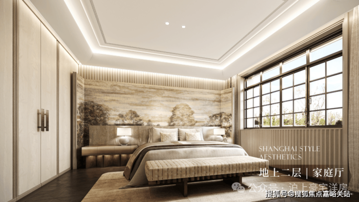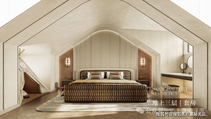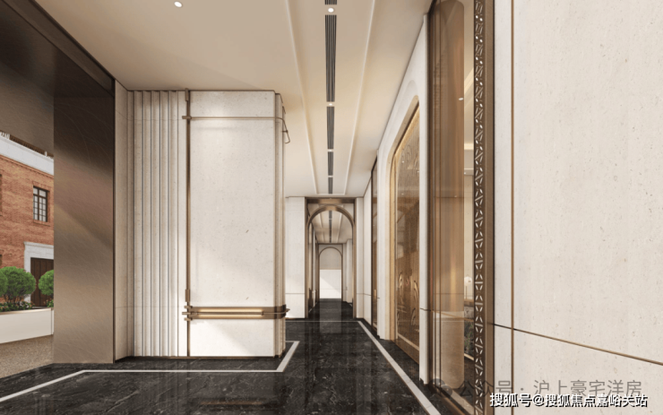 公区设计,巧妙融入百乐门印象、沪西电影院等文化元素,将过去记忆植入场景。嘉佩乐酒店式门庭、琉璃光廊式车库、海派人文哲思花园,以“深度酒店化”营造归家艺术之旅。