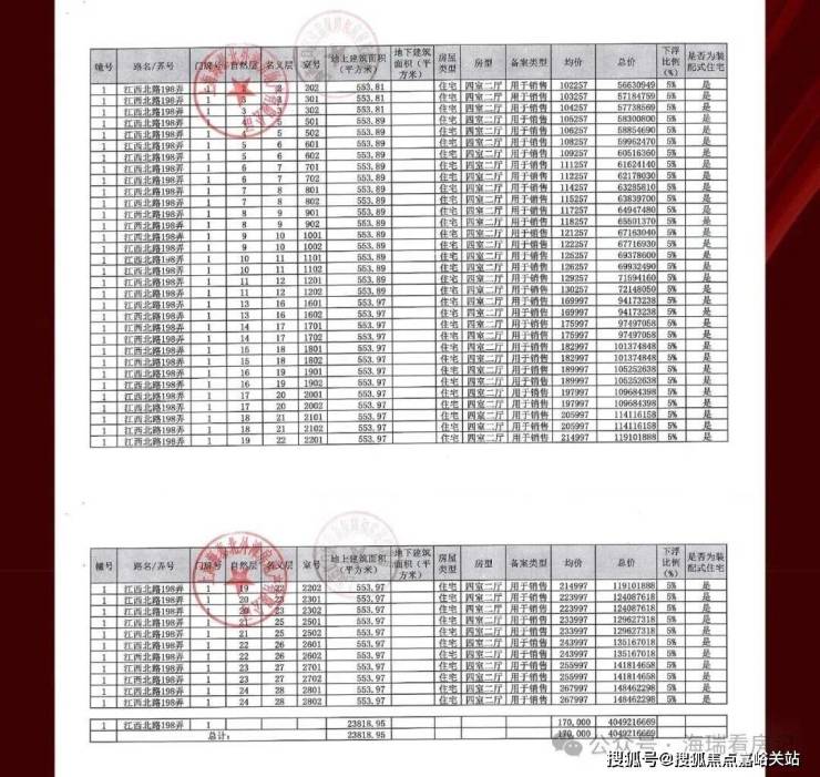 一房一价表如下: