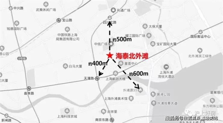 「海泰北外滩」位于虹口区四川北路塘沽路(江西北路以东,塘沽路以南,四川北路以西和规划七浦路以北), 距离外滩源仅有600米。