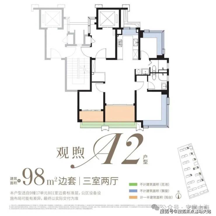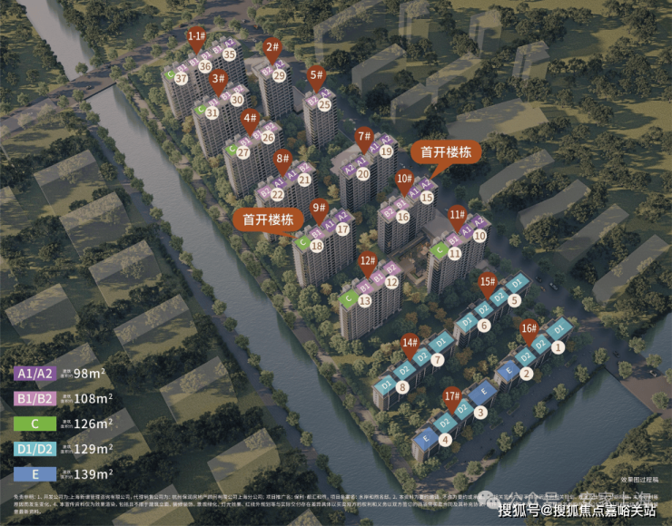 首开户型:98㎡三室两厅、108㎡三室两厅、126㎡四室两厅,共计118套