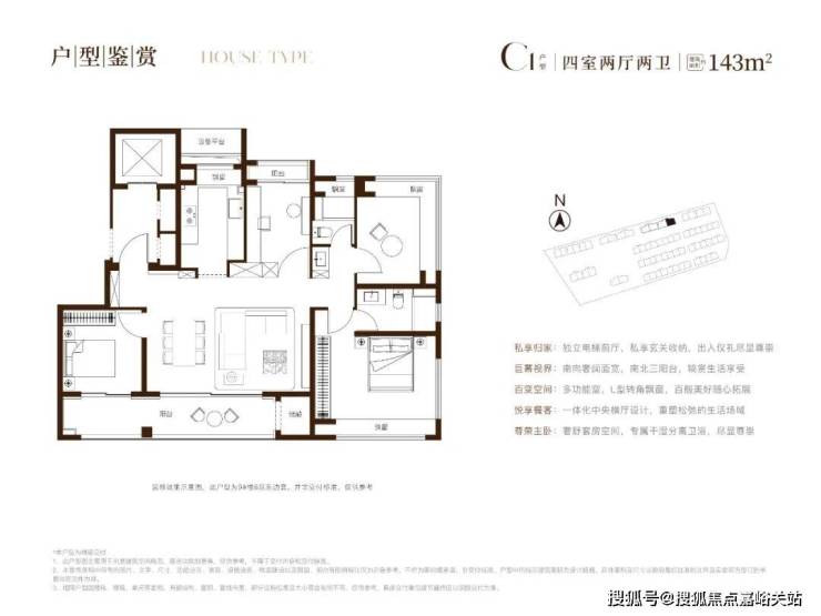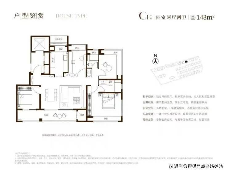 建面约143㎡的奢阔四房:堪称实现了改善家庭的终极梦想。类一梯一户设计赋予了私属电梯厅,居家隐私与尊崇感油然而生,约14.4米超宽四开间朝南尺度堪比大平层。