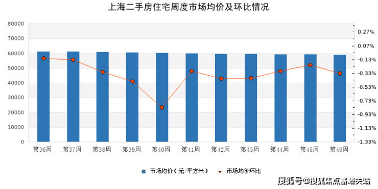 价格层面,市场仍处于下行通道。据诸葛找房数据研究中心监测,上周上海二手住宅市场均价为58,932元/㎡,环比下降0.33%,已连续多周保持缓步回落趋势。