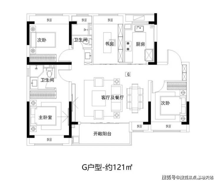 建面约121㎡ 4房2厅2卫,宽境4房,拓宽空间尺度; 大开间、进深短,通透采光;主卧独立卫浴,优雅随心的寝居感受。