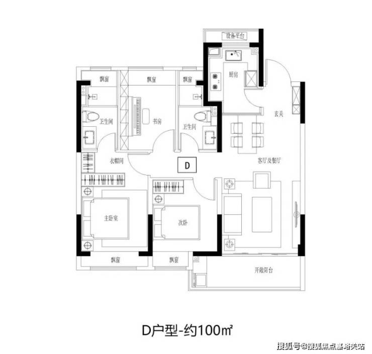建面约100㎡3房2卫,阳光三房 ,同等面积更多功能;宽幅南向观景阳台,把居住变成风景;步入式衣帽间,给予生活更多从容。