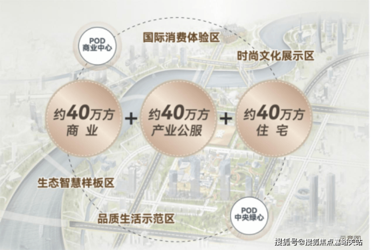 POD商业中心: 围绕漫步式商业街区打造的约40万方的“POD商业中心”,商业中心包含露天剧场、大型室外秀场、水上运动等。