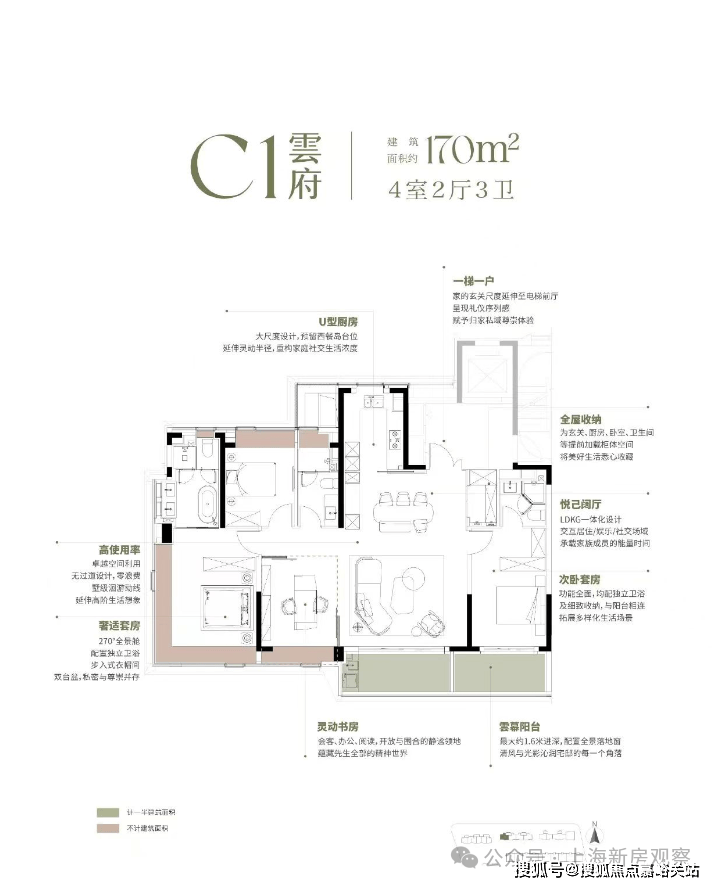 建面约113m²3房(136套)、约170㎡4房(32套)
