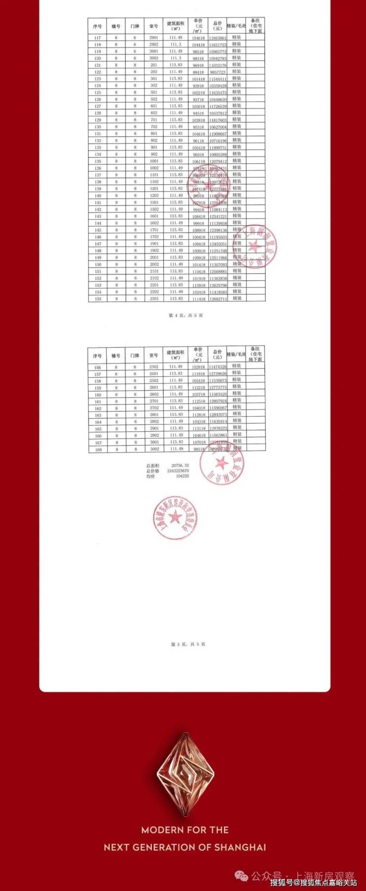 上期一房一价表如下: