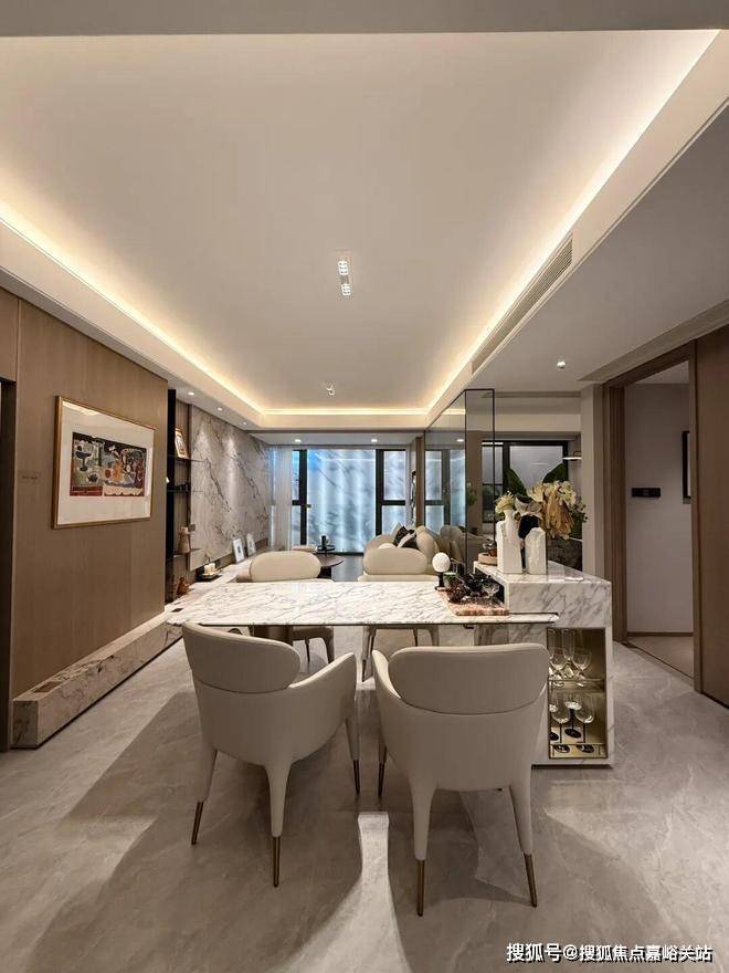 金地嘉峯汇售楼处电话4008569058☑️☑️LDKB一体化设计。通过金属玻璃移门和岛台联动,达成餐厨一体,增加家庭成员互动。烟道外置以及S墙内嵌设计,优化空间布局,提升台面使用感和转角柜使用频率。金地嘉峯汇售楼处电话4008569058☑️☑️