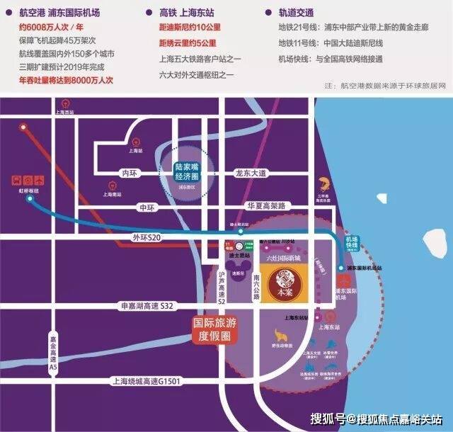·政府铺路,10分钟连中环度假区高架, 11号线和21号线直连。上海第五个高铁站,浦东机场T3航站楼扩建成为上海第一大飞机场,直接导入世界各地旅客。