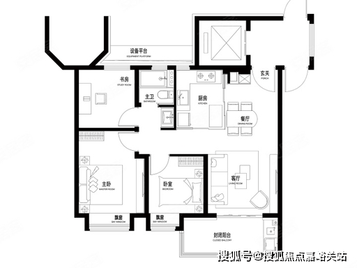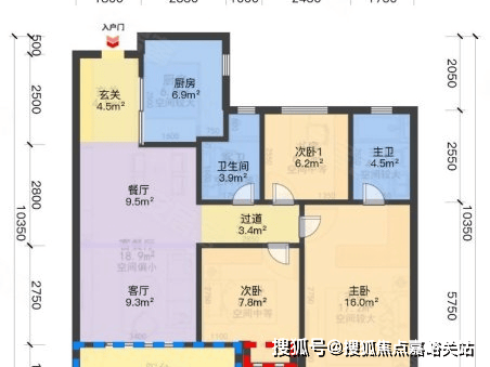95㎡户型:优点 —— 低总价、高实用、采光优越;缺点 —— 北向次卧空间适中。