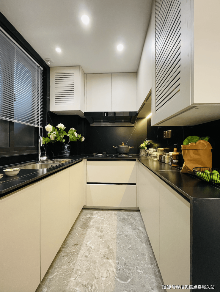 采用细石混凝土整浇抛光,并在表面涂有防滑环氧涂料,搭配白灰相间条纹,明朗宽阔,顶部配灯带,既保证了业主的安全驾驶,又让归家充满仪式感,呈现出高级与秩序之美