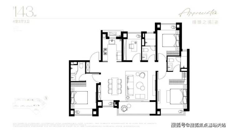 终极改善的顶奢4房!极端宽奢的南北通透户型飞机户型 ,你能想象到的美好都能在这个户型中体验到。