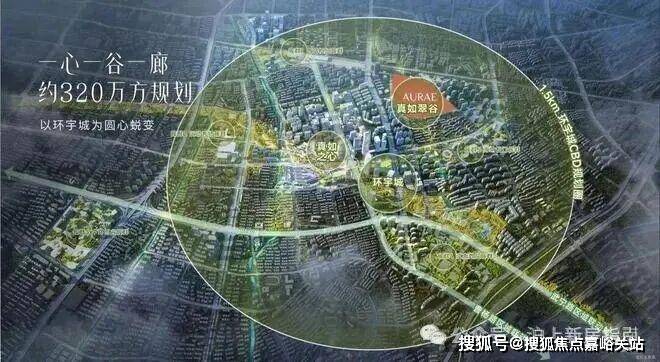以环宇城为圆心蜕变1.5km圈,围绕“一心一谷一廊” 规划。一心-真如之心、一廊-真如绿廊、一谷-真如翠谷。