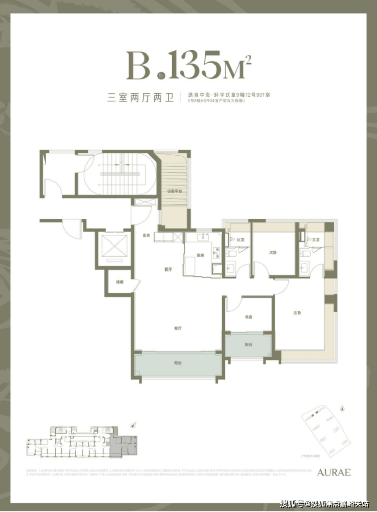 4、【新规后大三房】135平户型,三阳台,全飘窗,实得率约93%。