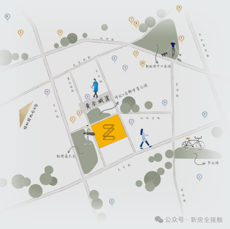 配套优势:步行可达的学校 / 商超 / 公园位置标注