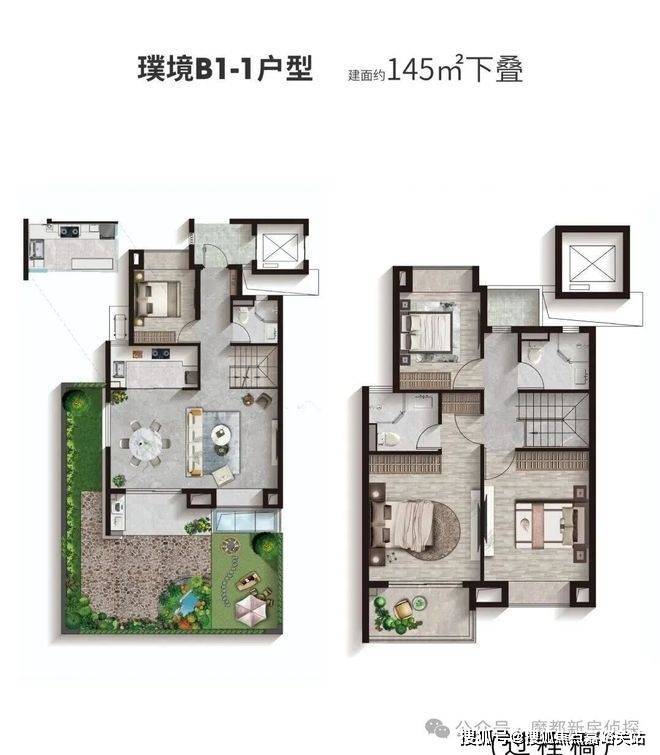 洋房+叠加的墅区住户更少,从土地、绿化、社区配套到物业,人均资源占有更多,隐私性更好。