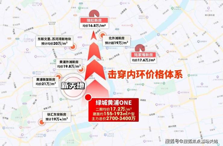 虹口在售新房单价已达 16.8万/㎡, 绿城地王预期更是 19万+/㎡;
