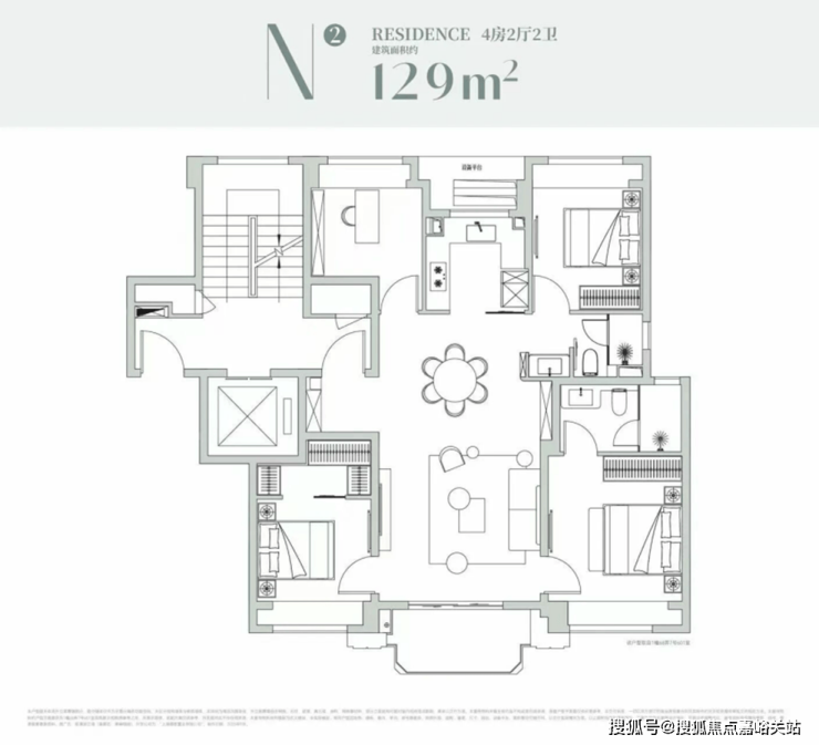 建面约129㎡4房2厅2卫:一梯两户,层高3.05米,三开间朝南,全卧飘窗,LDK一体化设计,南北直通,南向整体面宽约11.1米,其中客厅面宽约4.4米,主卧面宽约8.6米!