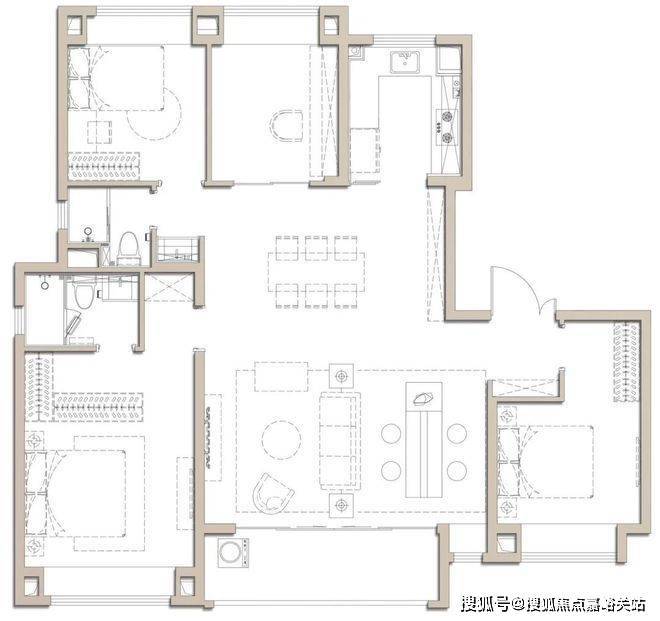 建面约100㎡是个典型的飞机户型,全明户型南北通透,独立玄关实用美观,几乎无过道浪费,延伸了空间的尺度。