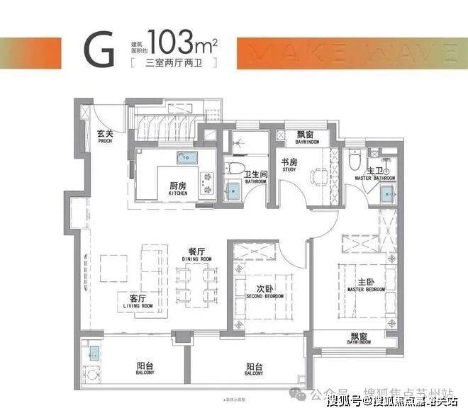 “南向双阳台+南北双飘窗”,构筑真3房户型!
