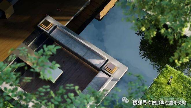 经典三段式别墅立面及大窗墙比,实现居住与自然的延伸;中灰色石材为基座,奢石宁静与土地矜贵互为映衬。中灰色石材的厚重感,深灰色铝板的舒展度,“安缦金”高奢质感勾勒边框,与蓝眼睛光面石砖、冰花蓝光面石材的交织下,呈现出“天光云影”的意境。