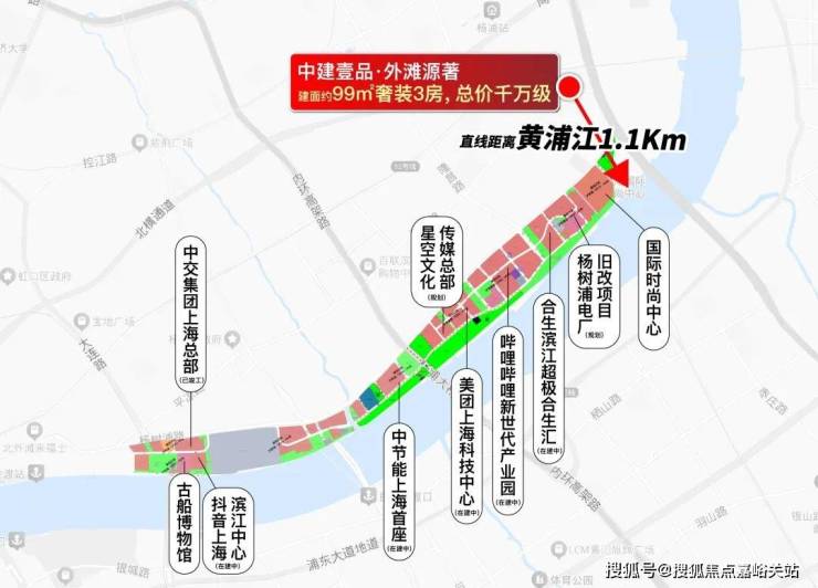 项目 与黄浦江直线距离约1.1公里,项目与国际时尚中心直线距离不到1公里,与超极合生汇(在建)直线距离约1.2公里,可谓是近水楼台。