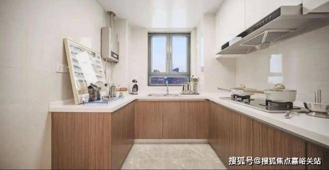 厨房采光面大且正对餐厅,东线布局合理,厨房U形布局使用率高;