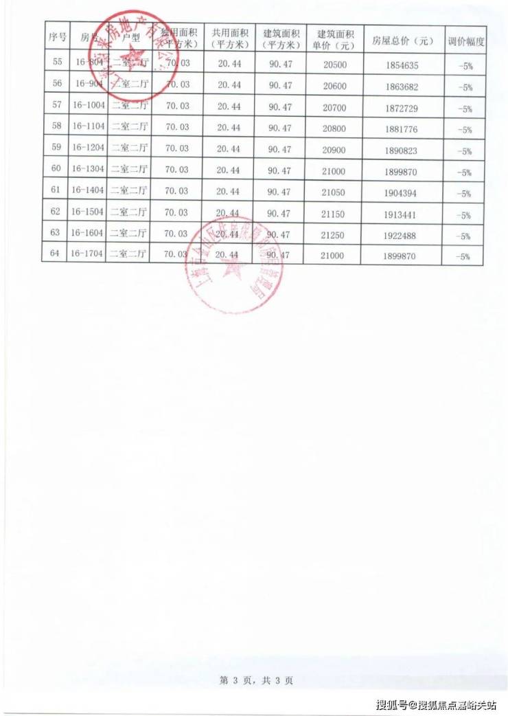项目一房一价表