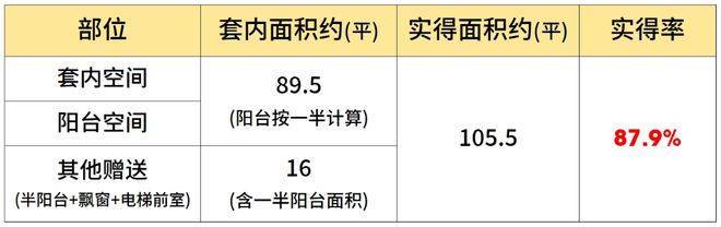该户型大量的飘窗+双阳台设计和樾长宁售楼处电话:400-8824-258(一对一热情服务),保证了每个功能间的通风采光,也提升了户型的实得率。经过专业建筑师测算,假设阳台全部封闭的情况下,项目建面约120㎡户型实得面积约105.5㎡,实得率约88%。(该实得率数据根据实得面积预估计算所得,仅供参考,不作为置业依据。最终得房率以购房合同为准)