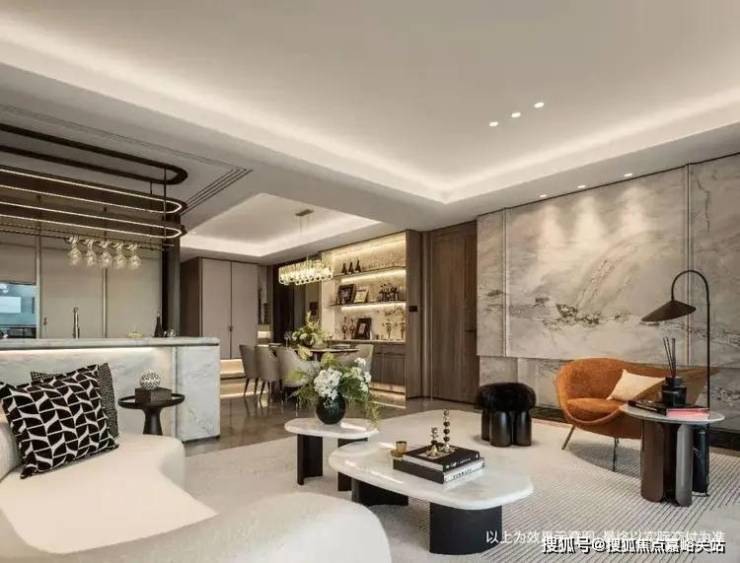 流光130「ALOKA」样板间,客厅背景墙遴选意大利奢石「烟雨江南」,土耳其「香奈尔灰」铺地,搭配尼斯木饰面,平衡出温润隐奢的格调。约6.7m面宽巨幕采光横厅,更带来一眼尽望虹口百年的无界视野;LDK一体,开放厨房延伸出的西式吧台,成为与家人亲密相处的社交剧场;五舒十二大健康科技系统、一线名品奢装,让生活的品质与品位兼得。