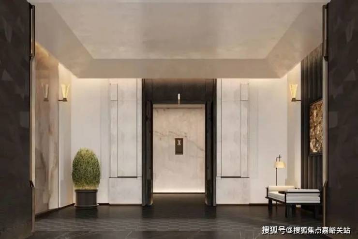 楼栋首层大堂公区端景墙,采用了自伊朗跨越4600多公里而来的顶级奢石“白雪公主”,即璞元“三藏五绝”中的——「白雪荧玉」。经1.3亿万年时间沉淀,自然孕育的天工灵石,白若凝脂,雪魂玉魄,晶莹剔透,通透纯净,惊鸿一瞥间,让人如见大地飘雪,净澈本心。