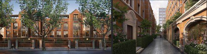 项目由GOA大象设计操刀,汲取外滩西式古典建筑风格。以红砖为主材,复刻老石库门的浪漫风貌,力求打造为一处“新时代里弄住宅”。同时将保留项目所在区域的地标和文化标志建筑,包括西本愿寺、景林庐等文保建筑。