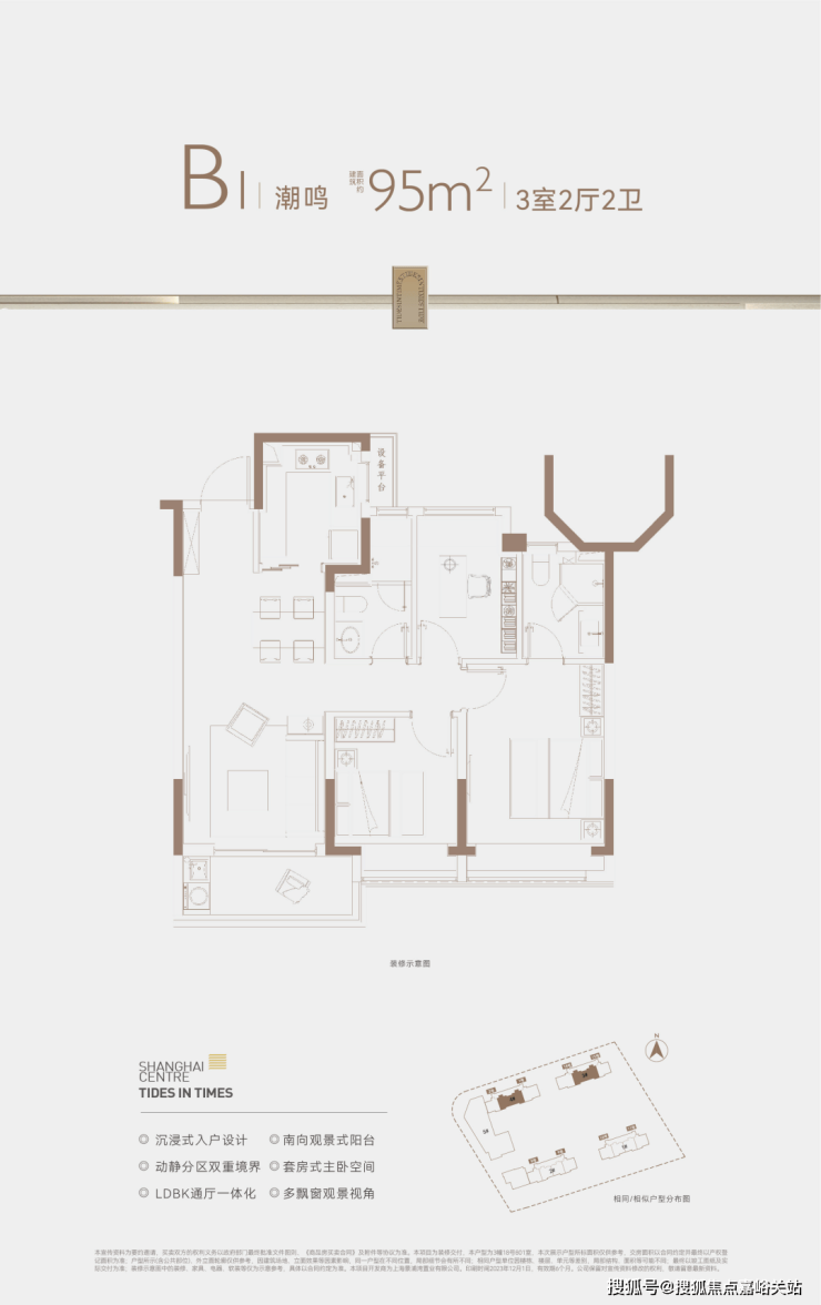 建面约95-97㎡3房2卫,2卫的设计保证了早晚高峰抢厕所的问题,并且主卧套房设计也保证了主人的私密空间。